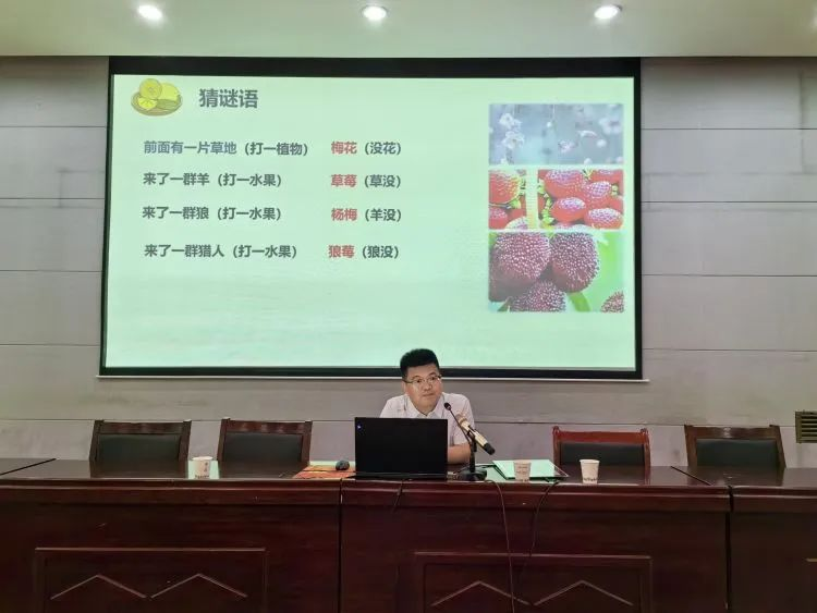 隨后,周偉權博士為學生帶來了一場別開生面的講座《果樹種質資源你知多少?》。周博士以猜謎語引導學生識別生活中的植物,向學生介紹了果樹相關知識,讓學生了解到中國的果樹資源,引導學生從植物學分類法和園藝分類法對植物進行分類。學生踴躍回答、積極參與,深切意識到科學來源于生活,科技起源于實踐。
