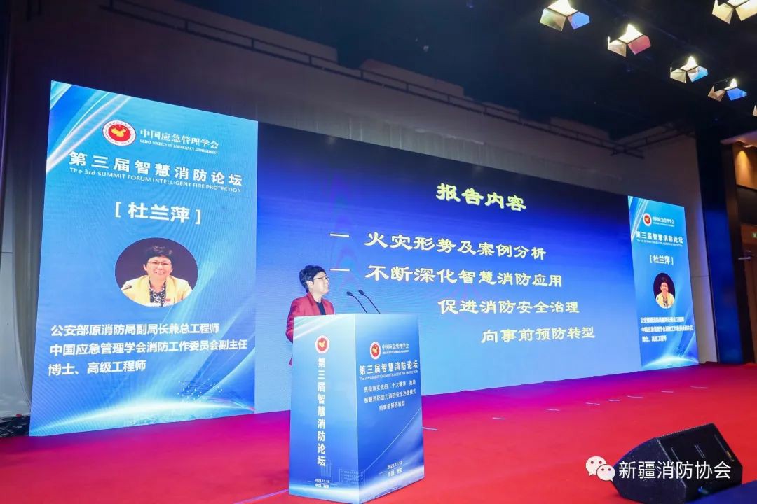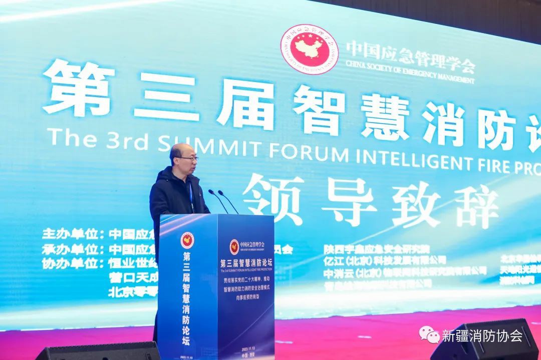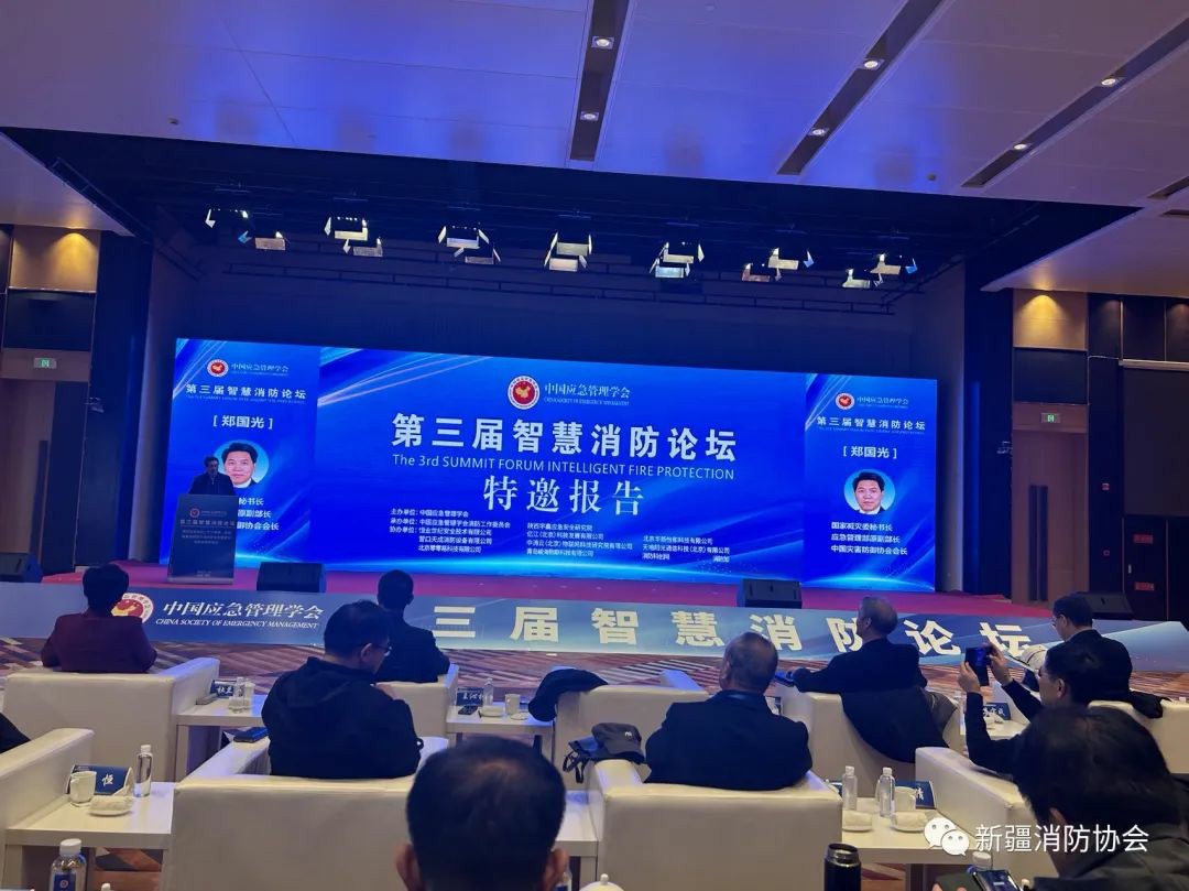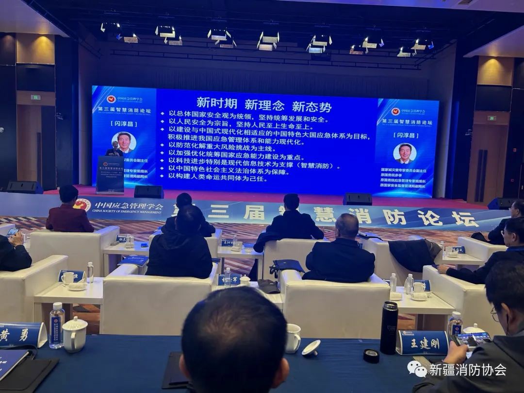 為總結(jié)推廣各地近年來建設(shè)、應(yīng)用“智慧消防”手段提升火災(zāi)防控和滅火救援能力的成效和經(jīng)驗,促進智慧消防高質(zhì)量發(fā)展,著力在防范化解重大安全風險方面發(fā)揮更大作用,2023年11月13日,由中國應(yīng)急管理學會主辦的“第三屆智慧消防論壇”在西安舉辦。論壇由公安部原消防局政治委員、中國應(yīng)急管理學會副會長、中國應(yīng)急管理學會消防工作委員會主任王沁林主持,國家減災(zāi)委員會秘書長、應(yīng)急管理部原副部長、中國災(zāi)害防御協(xié)會會長鄭國光,原國務(wù)院參事、原國務(wù)院應(yīng)急管理專家組組長、國家減災(zāi)委專家委員會原副主任閃淳昌,原公安部消防局副局長兼總工程師、中國應(yīng)急管理學會消防工作委員會副主任、博士、高級工程師杜蘭萍及全國部分省級協(xié)會負責人、消防工作委員會委員、專家代表出席,新疆消防協(xié)會會長張照雄和秘書長閆懷宣等應(yīng)邀出席。