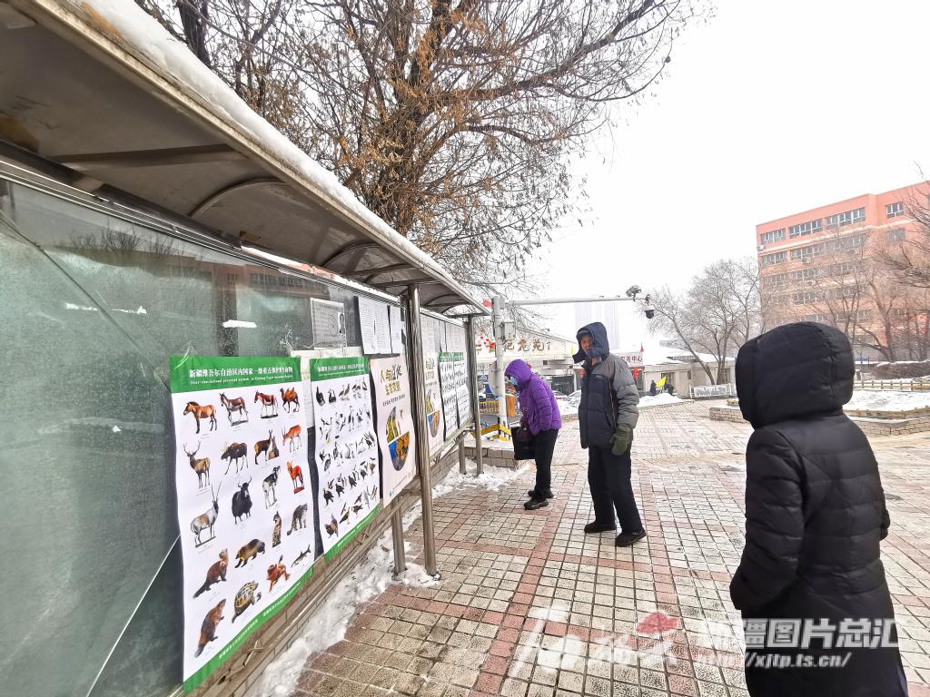 小區(qū)居民在觀看保護(hù)動(dòng)物掛圖。石榴云/新疆日?qǐng)?bào)記者 曹華攝