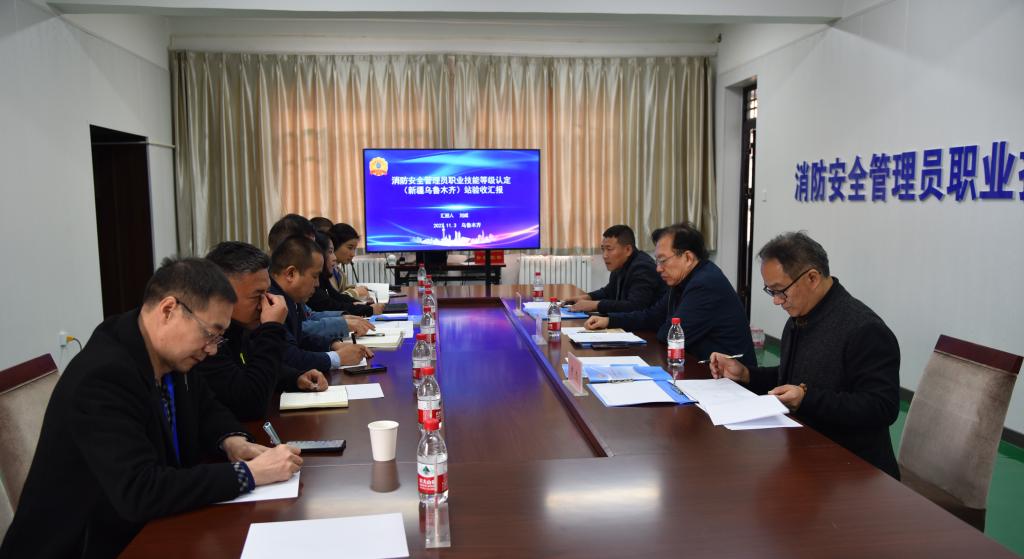 為進(jìn)一步推進(jìn)消防安全管理員職業(yè)技能認(rèn)定站的建設(shè),檢驗(yàn)新疆烏魯木齊站試運(yùn)行工作情況,推進(jìn)消防安全標(biāo)準(zhǔn)管理,不斷提升社會(huì)單位火災(zāi)防控水平,2023年11月2-4日,中國(guó)消防協(xié)會(huì)消防安全教育培訓(xùn)分會(huì)主任委員、專家委員會(huì)辦公室主任、高級(jí)工程師李國(guó)華,中國(guó)消防協(xié)會(huì)專家?guī)斐蓡T、工業(yè)氣體工業(yè)協(xié)會(huì)消防分會(huì)秘書(shū)長(zhǎng)、高級(jí)工程師尹杰等一行組成的消防安全管理員職業(yè)技能認(rèn)定站專家驗(yàn)收組,專程奔赴新疆烏魯木齊開(kāi)展消防安全管理員職業(yè)技能認(rèn)定站(新疆烏魯木齊)建設(shè)、試運(yùn)行情況等考評(píng)驗(yàn)收工作。新疆消防協(xié)會(huì)副會(huì)長(zhǎng)居立新,協(xié)會(huì)黨支部書(shū)記、秘書(shū)長(zhǎng)閆懷宣和常務(wù)理事、新疆鑫金盾技工學(xué)校理事長(zhǎng)李小壘等全程陪同。