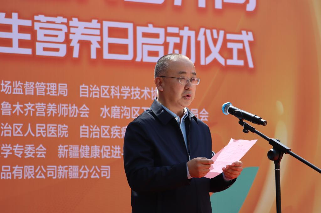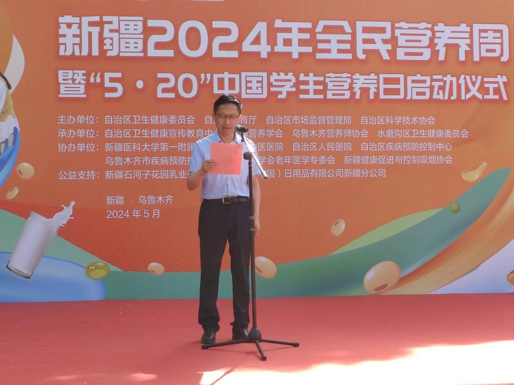 新疆醫學會副會長、自治區衛生健康行業新興組織黨委書記鄒小廣,自治區科協黨組成員、副主席擺曉宏,自治區市場監督管理局二級巡視員彭繼東,自治區教育廳體衛藝工作處四級調研員王倩分別在啟動儀式上致辭。新疆營養學會理事長李莉同志針對2024年全民營養周和5·20中國學生營養日傳播主題核心信息進行解讀。