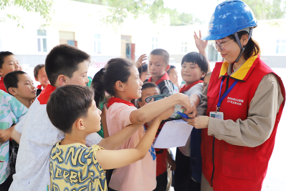 8月26日,國網哈密公司的電力科技工作者在哈密市第四小學開展“小喇叭·守護大安全”用電安全知識進校園活動。