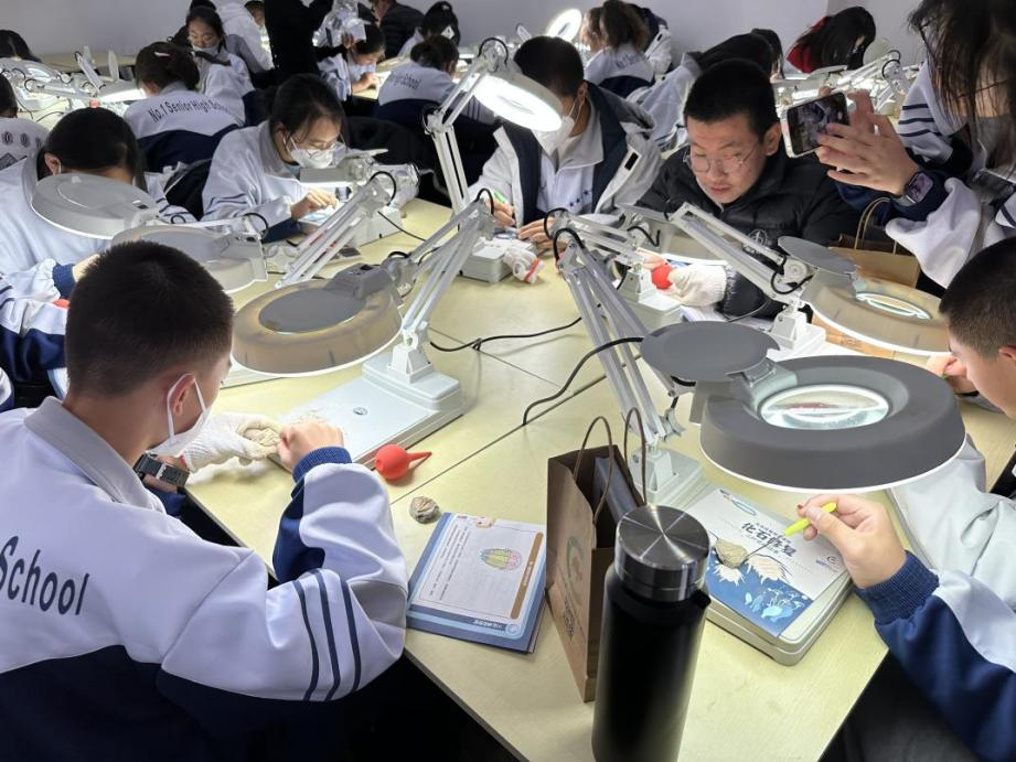 本次實踐活動的最后一環節由博物館科普老師于源博、韓雪怡、黃婷婷為學生們開展《遠古的寶藏-化石》科普課程,圍繞古生物“恐龍”“昆蟲”“魚類”“古生物”四個主題,通過實地觀察、動手動腦,讓學生們在實踐中進一步認識和了解這些古生物的形態特征,提高他們對自然、社會的認識,激發他們探索自然奧秘的興趣。同學們通過小組合作學習,對化石和古生物知識有了更深刻的認識。他們不僅了解了化石和古生物知識,還進一步培養了他們合作學習和團隊協作精神。在本次參觀學習中,同學們充分發揮自己的想象力、動手能力、合作精神以及對化石、古生物知識的探究精神。通過實踐活動,同學們對古生物有了更深的了解,學到了很多知識,懂得了許多道理。