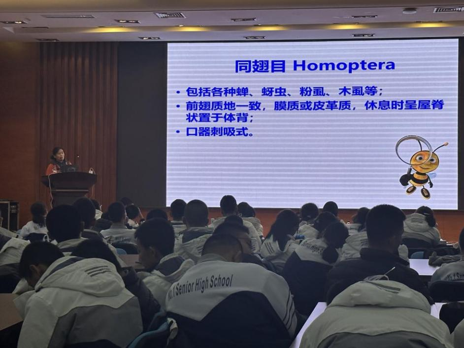 聽完昆蟲講座以后,大家對昆蟲有了基本的了解和認知,博物館科普老師于源博、韓雪怡、黃婷婷、孫藝涵給大家開展《美麗的花間仙子--蝴蝶》科普課程,以初識別蝴蝶、蝴蝶的一生為切入點給同學們普及蝴蝶基本特征、生理結構及生活習性,深入探索花間仙子-蝴蝶的擬態。科學課堂上,同學們興致勃勃,不僅認識了解了更多昆蟲,也親自動手制作了蝴蝶標本。通過對昆蟲知識的學習及動手實踐更深入了解了生物多樣性及科學嚴謹性。同時讓烏魯木齊市第一中學同學們走出校園,走進中科院親身動手實踐,為學科融合起到了帶頭作用。