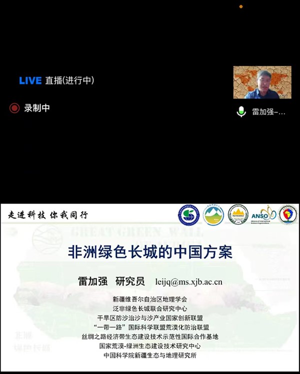雷加強(qiáng)的“非洲綠色長城的中國方案”報告,圍繞非洲綠色長城總體狀況、非洲綠色長城目前動向、對非合作研究主要進(jìn)展和非洲綠色長城方案建議四個方面論述了建立非洲綠色長城的原因和意義,展現(xiàn)了中國積極履行荒漠化防治國際公約締約國責(zé)任的形象。最后,雷加強(qiáng)代表新疆全體科技工作者沉痛悼念我國著名的沙漠與風(fēng)沙地貌學(xué)家、國家荒漠化防治專家夏訓(xùn)誠先生,緬懷他開創(chuàng)新疆沙漠化防治研究事業(yè)和開拓中非荒漠化防治科技合作的重大功績,表示將繼承和發(fā)揚(yáng)夏訓(xùn)誠先生嚴(yán)謹(jǐn)治學(xué)、使命擔(dān)當(dāng)、獎掖后學(xué)的老科學(xué)家精神,在荒漠化防治領(lǐng)域再創(chuàng)佳績。
