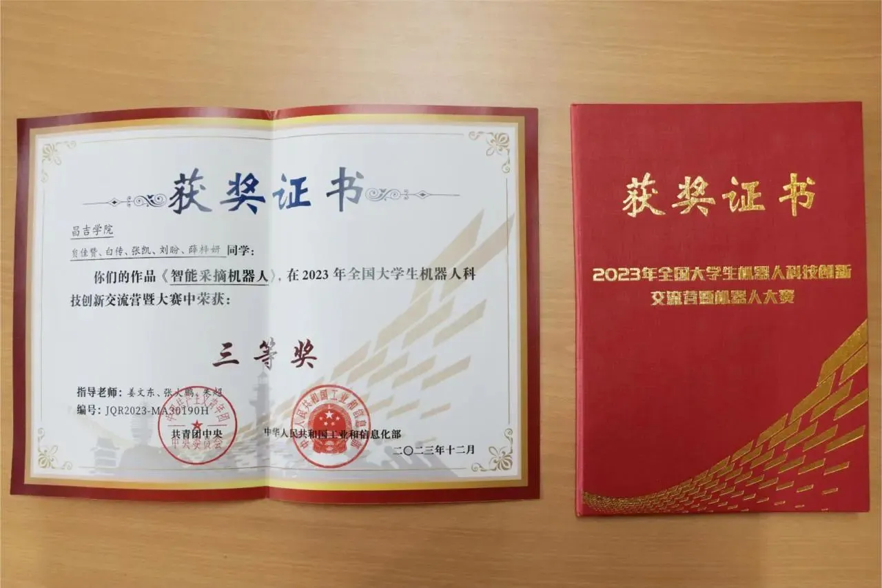 2023年全國大學生機器人科技創(chuàng)新交流營暨機器人大賽由共青團中央、工業(yè)和信息化部共同主辦。本屆大賽搭建工業(yè)機器人、個人及家用服務機器人、公共服務機器人、特種機器人、其他應用領域機器人等5大賽道,吸引全國30個省、自治區(qū)、直轄市及新疆生產(chǎn)建設兵團431所高校的1017件作品參賽,共有221件作品進入終審決賽,大賽組委會評出特等獎50個、一等獎74個、二等獎94個、三等獎300個。昌吉學院能源與控制工程學院學生高興林、張建文、楊簫如、劉歡,在苗珊、張大鵬、米湯老師指導下完成的“智慧灌溉系統(tǒng)”;學生高興林、李保偉、肖國卿、奎寶慧、王晶晶,在張大鵬、郭福濤、韓晨老師指導下完成的“光伏板清潔機器人”;學生贠佳贊、白傳、張凱、劉盼、薛梓妍,在姜文東、張大鵬、朱超老師指導下完成的“智能采摘機器人”,榮獲三等獎。