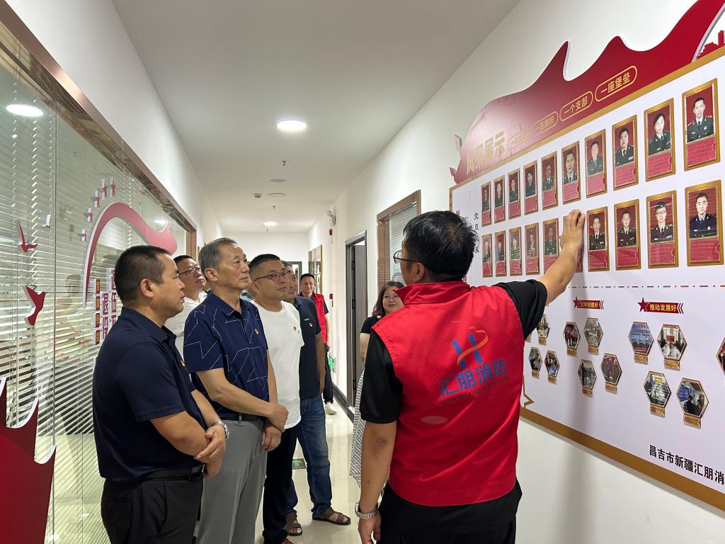 為慶祝中國人民解放軍建軍96周年,在“八一”建軍節(jié)即將到來之際,7月25日,新疆消防協(xié)會(huì)結(jié)合正在開展的學(xué)習(xí)貫徹習(xí)近平新時(shí)代中國特色社會(huì)主義思想主題教育和“大走訪、大調(diào)研、大服務(wù)“活動(dòng),組織黨員會(huì)員深入昌吉,先后走訪了會(huì)員企業(yè)新疆新宸環(huán)保科技服務(wù)有限公司、新疆匯朋消防工程有限公司,參觀了昌吉市退役軍人就業(yè)創(chuàng)業(yè)園,并在新疆匯朋消防工程有限公司組織了“消防老兵”慶“八一”建軍節(jié)主題黨日活動(dòng)。新疆消防協(xié)會(huì)會(huì)長張照雄、秘書長閆懷宣及會(huì)員單位代表鄧勇剛、左明輝、唐培鑫、武恩來、周振江、程艷、牛江峰、曾志平等齊聚一堂,共慶建軍佳節(jié)。