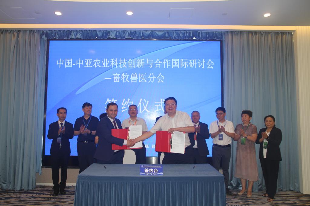 研討會上,鄭文新院長、宮平所長分別代表新疆畜牧科學院和新疆畜牧科學院質量標準研究所與哈薩克斯坦、塔吉克斯坦、烏茲別克斯坦、巴基斯坦農牧業科研院校的代表,簽署了6份合作協議。
