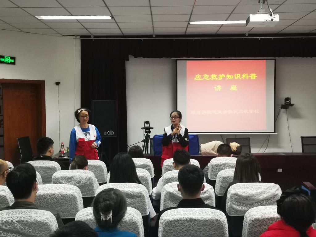 培訓(xùn)中,科普志愿者、應(yīng)急救護(hù)師資肖紅老師從理論知識(shí)講解開始,普及《中華人民共和國(guó)紅十字會(huì)法》,深入淺出地講解了心肺復(fù)蘇、AED使用、人工呼吸、外傷止血和包扎等急救知識(shí),宣傳普及了紅十字運(yùn)動(dòng)基本知識(shí);從實(shí)際操作入手組織員工們分組進(jìn)行心肺復(fù)蘇技能實(shí)操演練,耐心解答學(xué)員的問題,糾正不規(guī)范操作。重點(diǎn)詳細(xì)的講解了“黃金四分鐘”的概念、止血包扎等創(chuàng)傷救護(hù)基本技能、常見急癥現(xiàn)場(chǎng)處理、突發(fā)事件和意外傷害現(xiàn)場(chǎng)應(yīng)對(duì)、心肺復(fù)蘇等應(yīng)急救護(hù)知識(shí)和技能,并指導(dǎo)學(xué)員利用模擬人、繃帶等教具進(jìn)行實(shí)操演練。居民們認(rèn)真聽講并積極踴躍參與實(shí)操演練,現(xiàn)場(chǎng)氣氛十分熱烈。