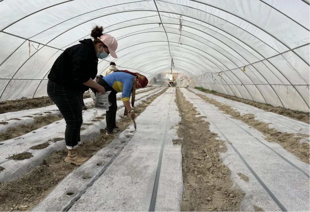 當(dāng)日,團(tuán)結(jié)鎮(zhèn)東海子村民赫付強(qiáng)正在進(jìn)行大棚蔬菜種植,共需種植3.1畝地,主要是梨樹套種西紅柿、豇豆等蔬菜。赫付強(qiáng)從2019年開始從事蔬菜種植,積極參加蔬菜種植的科學(xué)技能培訓(xùn),學(xué)習(xí)了很多關(guān)于種植方面的新知識(shí)。同時(shí),自己主動(dòng)學(xué)習(xí)科學(xué)技術(shù),大膽嘗試,積極探索蔬菜種植高效新模式,依靠科技增收致富,實(shí)現(xiàn)了蔬菜種植年年豐收。他說:“我有信心,今年一畝地增收至少比去年翻一番,加上十幾畝地對(duì)外承包,家庭經(jīng)濟(jì)收入大幅度增長(zhǎng)!”赫付強(qiáng)在蔬菜生產(chǎn)經(jīng)營(yíng)上,取得較好的經(jīng)濟(jì)效益后,還將自己研究的新技術(shù)和新種植模式毫無保留地傳授給其他群眾,并為村民無償提供優(yōu)質(zhì)蔬菜種苗,帶動(dòng)20余戶農(nóng)戶共同致富。