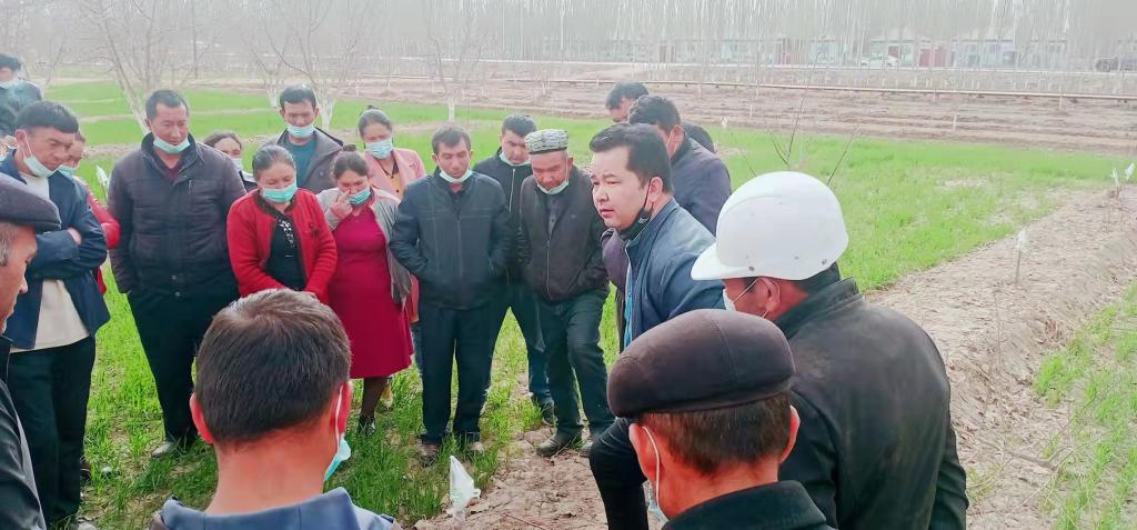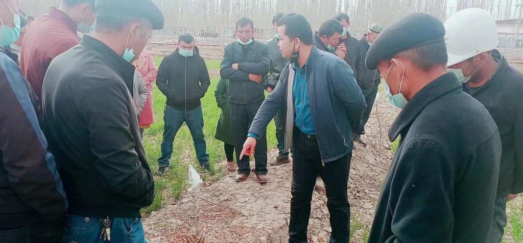 3月28日,伽師縣科技局邀請自治區(qū)林科院副研究員木合塔爾·扎熱深入伽師縣新梅示范園,利用3-4小時進行現(xiàn)場指導(dǎo)培訓(xùn),幫助農(nóng)民檢查苗情、病蟲害防治,指導(dǎo)農(nóng)民因地、因苗、因時搞好土、肥、水管理和修枝壓枝及病蟲防控工作,提高果樹增強抗病能力。