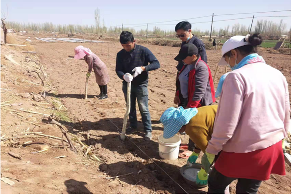 2022年2月春節(jié)還未過(guò)完,趙亮一行三人就帶著前期的化驗(yàn)成果、理論成果及30多種馬鈴薯品種到伽師縣江巴孜鄉(xiāng)蘭干(4)村,利用近兩個(gè)月的時(shí)間和大家工作、生活、勞動(dòng)、學(xué)習(xí)在一起,對(duì)將要實(shí)施的項(xiàng)目示范田進(jìn)行合理的規(guī)劃、設(shè)計(jì),向當(dāng)?shù)卮迕裰v解品種的管理、土地的平整及相關(guān)注意事項(xiàng)。