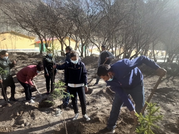 西合休鄉(xiāng)坐落在昆侖山腹地,氣候與平原地區(qū)不同,氣候寒冷、環(huán)境惡劣、樹木稀少,定植樹苗后極難成活。為了讓大山里有更多綠色,干部群眾積極參加到植樹活動中,大家分工合作,挖坑、扶樹苗、澆水……熱鬧的場面溫馨而快樂。在所有人的辛勤勞動下,樹苗“亭亭玉立”在沃土上。雖然大家腳底全是泥土,但眼前這一片新生的春意讓大家滿心歡喜,通過一代代人的努力堅持,鍥而不舍、馳而不息,他們用自己的實際行動綠化生態(tài)環(huán)境,美化人居環(huán)境,推動美麗中國建設。