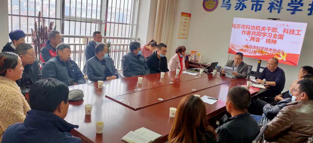 3月22日下午,烏蘇市科協組織全體干部及科技工作者一同召開全國兩會專題學習會,傳達學習貫徹兩會精神,烏蘇市科協主席孫厚典主持會議并傳達精神。