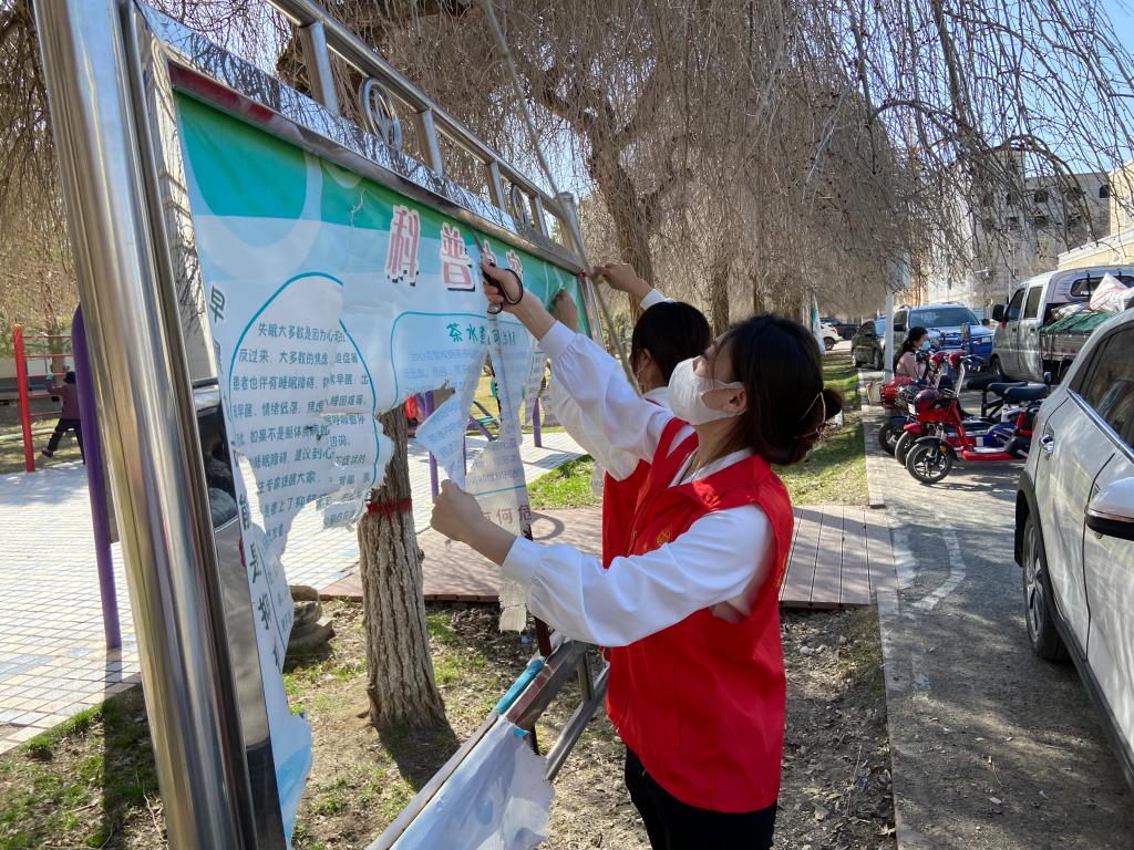 志愿者及時拆除陳舊的宣傳展版,打掃周邊草坪生活垃圾。經過志愿者們的努力,電影院前的宣傳展板及草坪變得干凈整潔,為市民日常休閑娛樂創建了一個潔凈優美舒適的生活環境,同時為塔城市創建全國文明城市貢獻科技志愿者的一份力量。