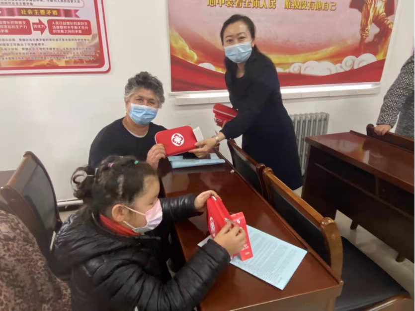 此外,科技志愿服務(wù)隊隊員們?yōu)榍皝韰⒓踊顒拥娜罕娒赓M發(fā)放健康生活宣傳冊、家庭急救包。