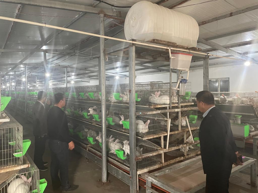 4月25日,烏蘇市科協孫厚典一行走進百泉鎮致富帶頭人陸萬軍家庭養殖農場,實地查看養殖場養殖情況、養殖規模,了解種兔繁殖、兔舍的環境治理、飼料的調配、銷售情況。
