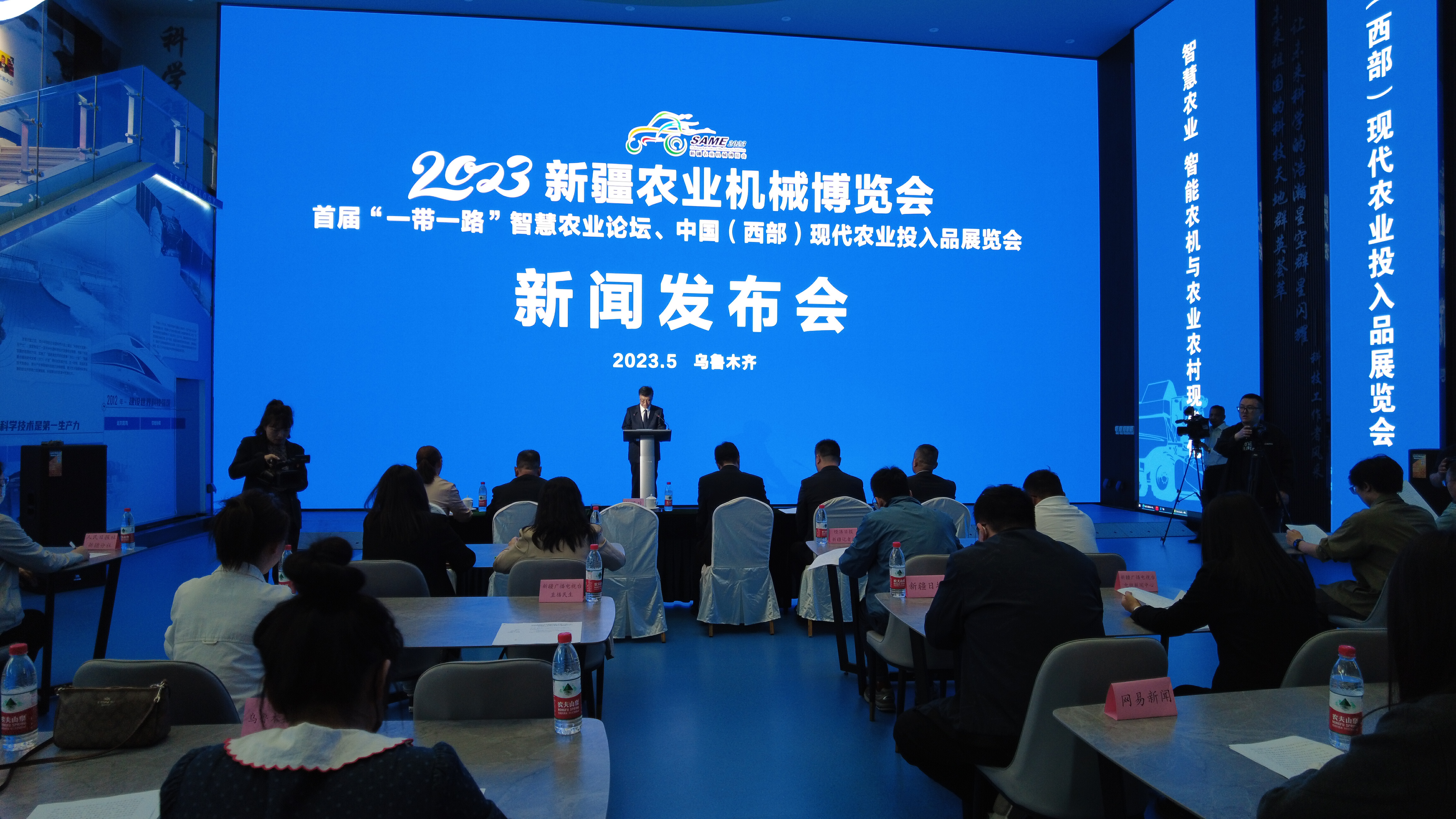 5月17日,2023新疆農(nóng)業(yè)機(jī)械博覽會(huì)新聞發(fā)布會(huì)舉行。兵團(tuán)日?qǐng)?bào)全媒體記者 秦俊偉 攝