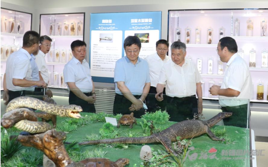 7月12日,吳建平院士和吾守爾·斯拉木院士在喀什大學(xué)自然博物館參觀。通訊員 陳朝攝