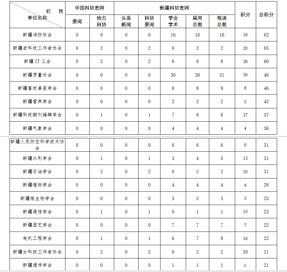 注:1.被自治區科協官網“頭條新聞”采用的信息,每條10分;“科協要聞”欄目采用的信息,每條5分;其它欄目采用的信息,每條1分。