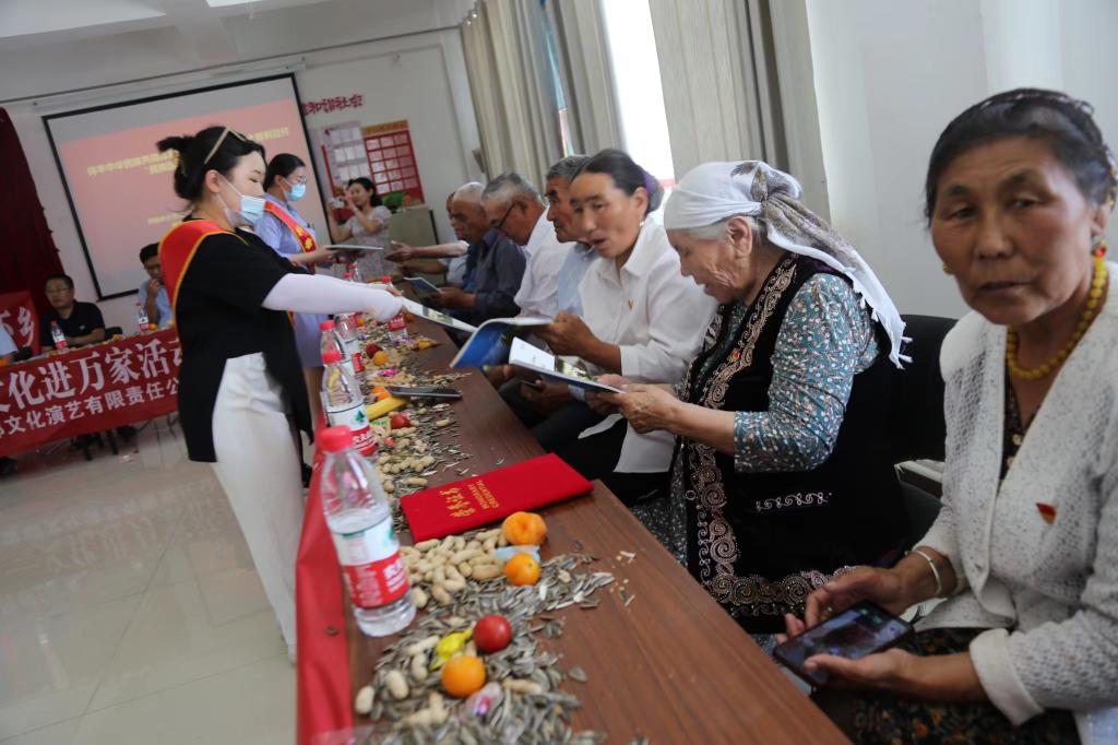 本次活動為村民宣傳講解《科普法》,并圍繞庫布西村特點開展養殖、種植技術培訓。共發放了《中華人民共和國科學技術普及法》、新疆畜牧業雜志、健康生活、自然科學、血液相關科普知識、預防艾滋病等相關科普宣傳單300余份、專業技術手冊100余本、宣傳袋100份、紙巾100盒。庫布西村村民努爾蘭·海薩說道:“本次聯誼活動收獲滿滿,由地區科協領導及工作人員講解的關于科學防災避險、安全室內火災逃生、地震逃生、海嘯逃生、沙塵暴防護、森林火災、泥石流避險、洪災自保措施等密切相關我們日常生活的科普理論知識,提高了我們對《科普法》的認識,增強了我們對科學的認識。”