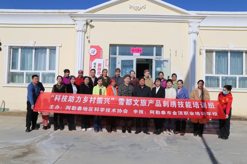 為充分發揮產業扶貧的帶動作用,進一步提高阿勒泰市繡娘的繡技,切實推動阿勒泰市刺繡產業發展,2023年3月24日,由阿勒泰地區科協主辦、阿勒泰市金頂職業培訓學校(阿勒泰達那外貿有限公司)協辦的“科技助力鄉村振興”雪都文旅產品刺繡技能培訓班正式開班,培訓班的第一節課來到了阿勒泰市切木爾切克鎮希巴爾齊村。培訓班特邀阿勒泰市金頂職業培訓學校(阿勒泰達那外貿有限公司)巴格古麗·沃拉勒泰校長進行授課。阿勒泰地區科協三級調研員、地區反邪教協會理事長白金玉,阿勒泰市切木爾切克鎮希巴爾齊村村干部等相關領導親臨培訓現場。該村25名繡娘參加培訓。