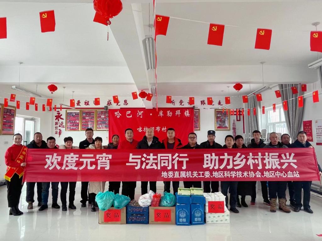 為豐富群眾文化生活,營造元宵佳節喜慶、祥和的節日氣氛,推動鄉村文明建設,聚力鄉村振興,2月3日,阿勒泰地委直屬機關工委、地區科協和地區中心血站,在哈巴河縣庫勒拜鎮喀拉闊布村聯合開展“歡度元宵?與法同行 助力鄉村振興”主題活動。