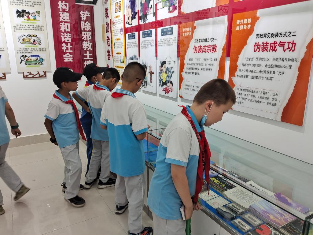 活動(dòng)中,阿勒泰地區(qū)科協(xié)工作人員帶領(lǐng)同學(xué)們參觀反邪教科普警示屋,面對(duì)面為大家解疑釋惑,以典型案例講明邪教危害,教育同學(xué)們要旗幟鮮明地崇尚科學(xué)、反對(duì)邪教。