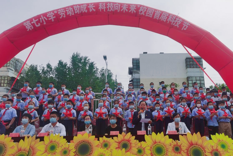 科技初心賦創新,助力勞動絢麗花。5月12日,克拉瑪依市第七小學全體師生共同迎來了首屆科技節開幕式。本屆科技節的主題是“勞動助成長,科技向未來”。科技節開幕營造了濃厚的學科學、愛科學、用科學的校園氛圍。