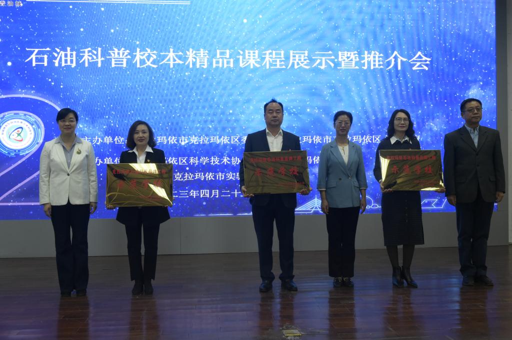 在本次推介會上,自治區(qū)科協(xié)、市科協(xié)、克拉瑪依區(qū)領(lǐng)導(dǎo)為3所克拉瑪依石油科普品牌“示范學(xué)校”,6所克拉瑪依石油科普品牌“試點學(xué)校”授牌。