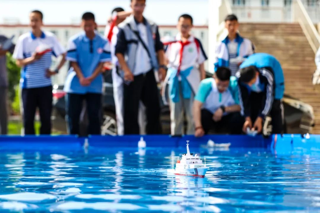 比賽現場,氣氛緊張而熱烈。中國“海警”船模型航行賽的賽區,波光粼粼的水面上,一艘艘遙控船在選手們的操控下,如離弦之箭般飛馳而過,激起層層浪花。在場觀眾目光緊緊鎖定在湖面上的每一次疾馳與轉彎,每當有精彩的表現,現場就會爆發出熱烈的掌聲和歡呼聲。