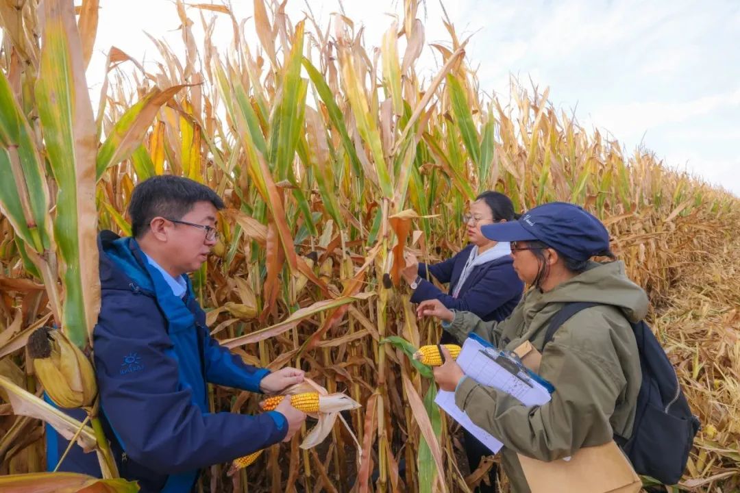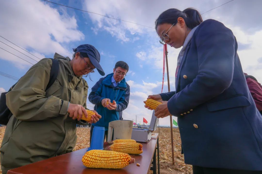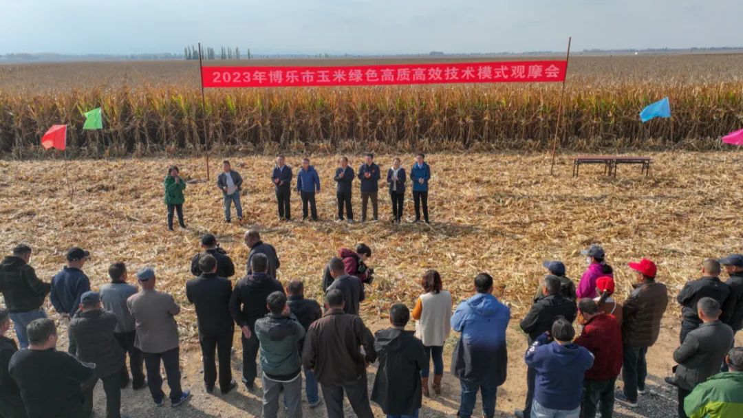 隨后,與會人員觀摩了博樂市阿熱勒托海牧場蘇門迭布斯格村、博樂市小營盤鎮烏蘭克日木村玉米種植區,專家及技術員現場對玉米實收進行了測產。