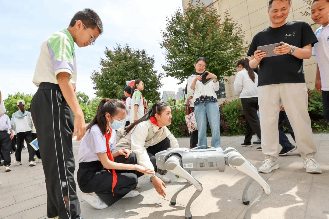 活動現(xiàn)場,科普大篷車帶來的20余件最新科普展品瞬間成為焦點。機器狗靈活敏捷,時而昂首闊步,時而騰空躍起,以精準的動作展現(xiàn)人工智能的奇妙;智能下棋機器人“棋藝高超”,與學生們對弈時沉穩(wěn)落子,引導大家探索算法與策略的奧秘;天氣模擬器則通過逼真的場景還原,讓學生們直觀感受風雨雷電的形成原理,仿佛置身于氣象萬千的大自然之中。