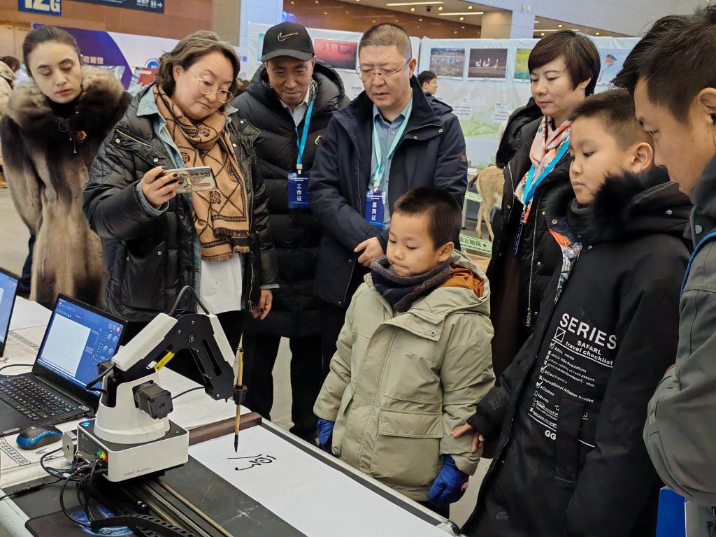 在經(jīng)開區(qū)(頭區(qū))展區(qū),科技園社區(qū)、金風(fēng)科技股份有限公司等十余家單位參加了展覽。現(xiàn)場展出了風(fēng)力發(fā)電機(jī)組、工業(yè)無人機(jī)、教育無人機(jī)、模擬飛行等內(nèi)容,吸引現(xiàn)場青少年、學(xué)生家長駐足觀看,機(jī)器人舞蹈更是讓全場大呼驚奇。