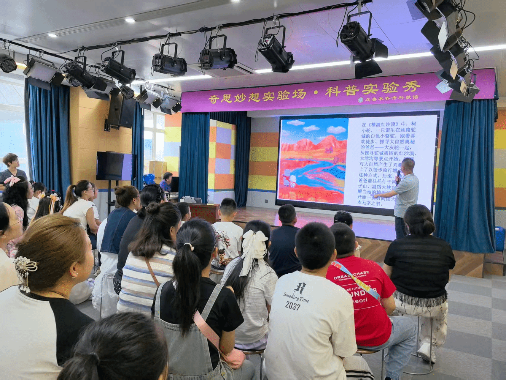 新疆知名科普作家葛勇帶著《柯小駝漫游奇境記》為50組親子家庭解鎖“故事里的科學”。他結合童話情節講解地理風貌、自然原理,通過提問互動、場景模擬引導孩子觀察生活中的科學。家長們邊聽邊記教育方法,64小學家長尚繼喬感慨:“不僅孩子學到知識,我也得到了了家庭科普新思路!”