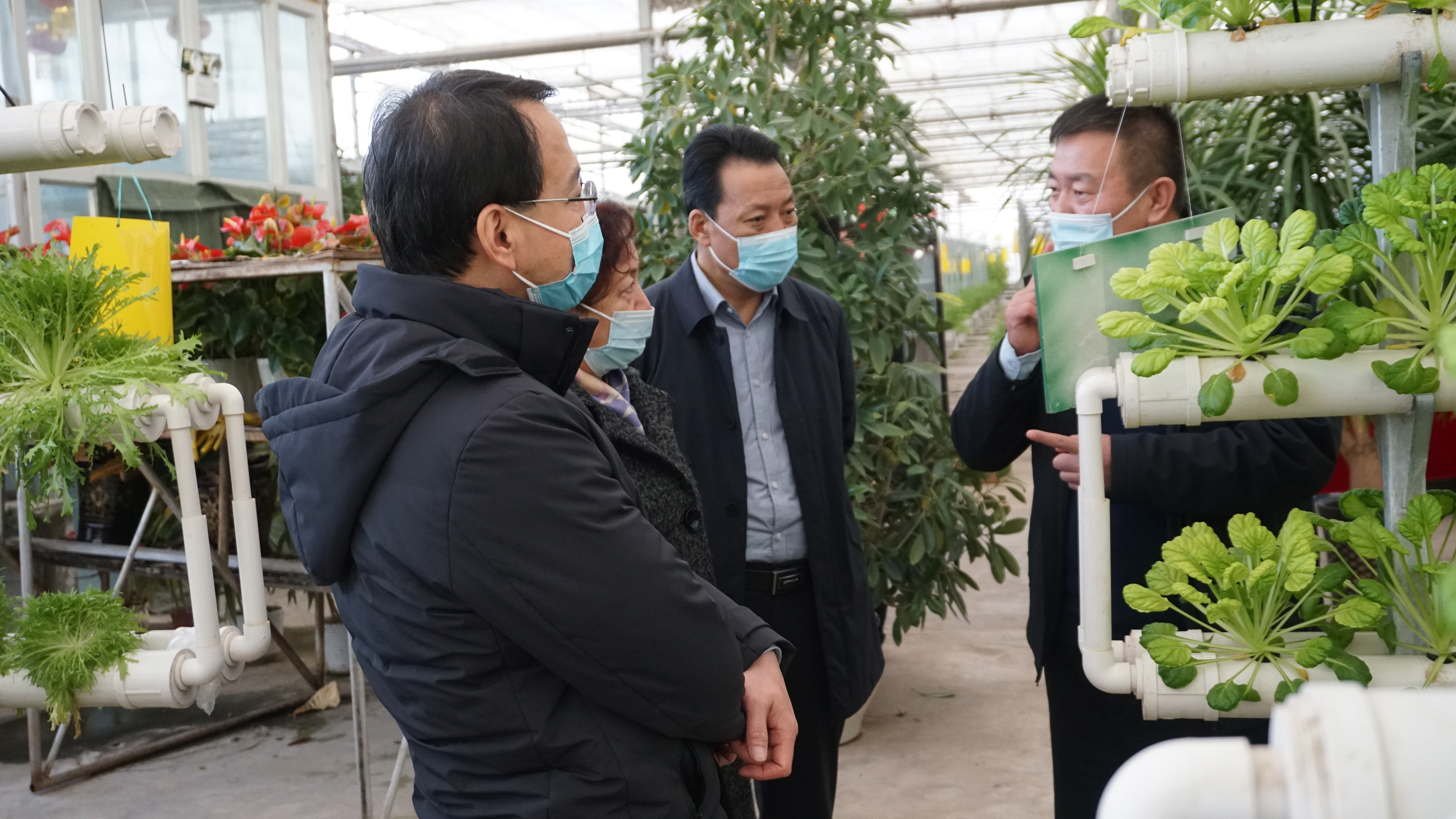 2月14日,自治區科學技術協會農村專業技術服務中心主任魏立群一行3人,喀什科學技術協會黨組成員、副主席楊永福一行4人赴哈密市伊州區國家農業科技園區考察調研新疆伊州哈密瓜“科技小院”建設工作及哈密瓜新品種研發和實際種植情況。哈密市科協黨組書記、副主席哈斯葉蒂·依沙克陪同調研。