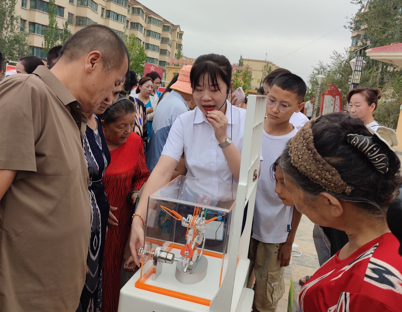 在活動展示現場,“機械蜂鳥”“小球運動”等近10余件科教展品和涵蓋數學、光學、電學、力學等多方面的科學原理,當群眾及社區中小學生看著未見過的新奇科教展品設施,在自己親自動手演示下,竟然發生了神奇的變化,一個個都張大了嘴巴、驚嘆不已。孩子們在參觀學習和實踐中,切身領悟到了科技魅力,原來科技竟然離他們并不遙遠,科學就在身邊。