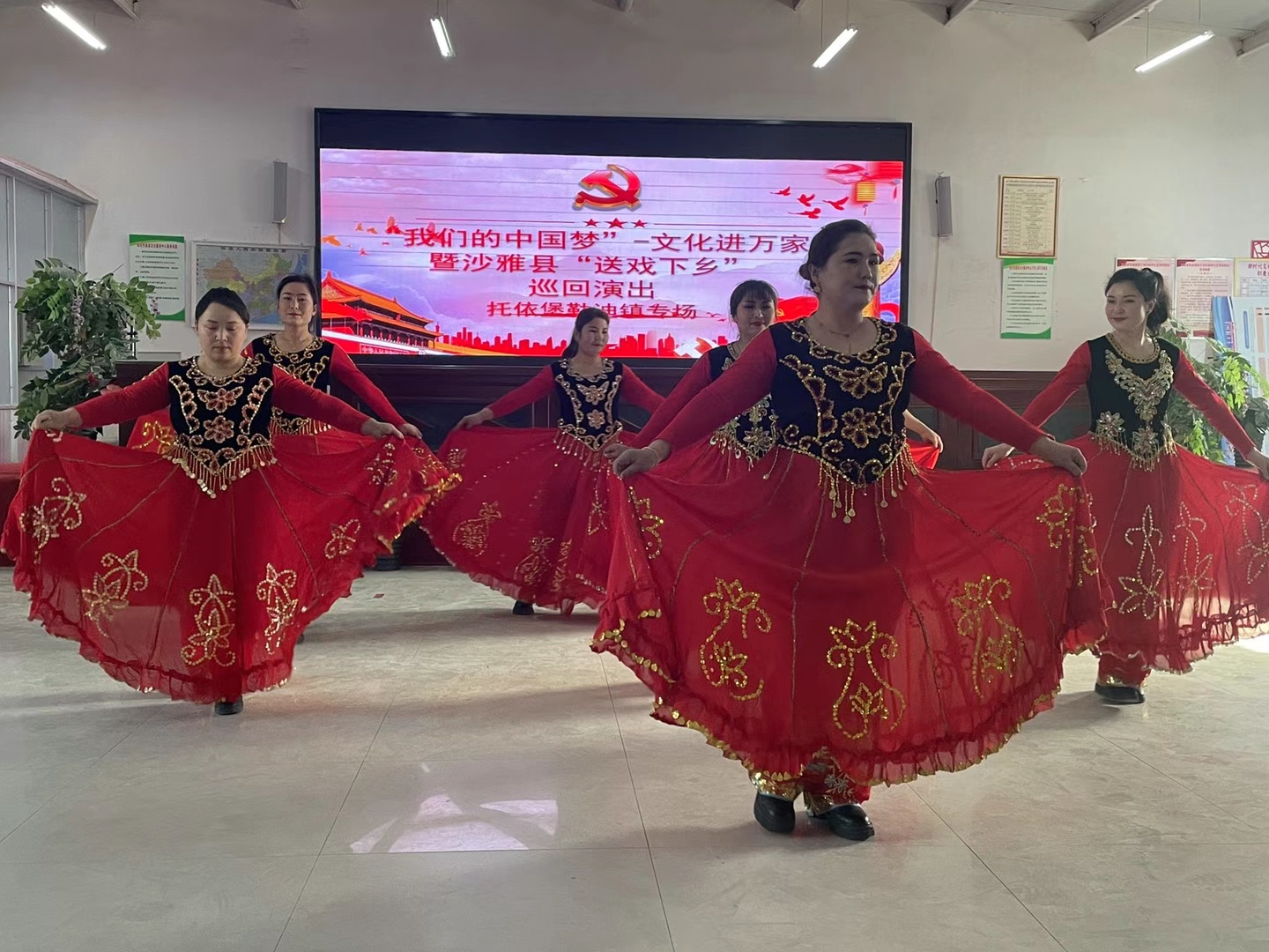 上午十一時許,托依堡勒迪鎮(zhèn)文化活動室內(nèi),歡歌笑語,一片喜慶祥和。歡快的《黑走馬》、柔美的《起風了》......百余名熱情的觀眾興高采烈地觀看著豐富多彩的文藝節(jié)目,舞蹈、唱歌、相聲......各種接地氣的表現(xiàn)形式,贏得觀眾陣陣掌聲和笑聲。