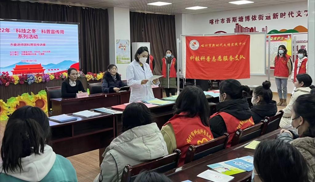 為貫徹落實(shí)好全民科學(xué)素質(zhì)行動(dòng)實(shí)施綱要《2021—2025》,弘揚(yáng)科學(xué)精神、傳播科學(xué)知識(shí)、提升科學(xué)素質(zhì),喀什市科協(xié)組織各全民科學(xué)素質(zhì)成員單位,于2023年1月11日啟動(dòng),分兩個(gè)階段動(dòng)員相關(guān)單位和專業(yè)技術(shù)人員,深入9個(gè)鄉(xiāng)鎮(zhèn)和8個(gè)街道,開(kāi)展主題鮮明、內(nèi)容豐富、形式多樣的“科技之冬”科普宣傳周系列活動(dòng)。通過(guò)優(yōu)化整合各成員單位的科普資源,采取面對(duì)面宣傳黨的二十大精神、專題科普講座、科普骨干培訓(xùn)、科普宣傳服務(wù)、惠民行動(dòng)等方式,舉辦以農(nóng)牧林技術(shù)、防災(zāi)減災(zāi)、安全生產(chǎn)、科學(xué)普及、環(huán)境保護(hù)、疫情防控、醫(yī)療保健、消防安全、交通安全、食品安全等科普內(nèi)容為主的講座45場(chǎng)次、受益群眾達(dá)8488人次,科普骨干培訓(xùn)2場(chǎng)次、受訓(xùn)人員達(dá)56人次。活動(dòng)期間,組建科技科普志愿服務(wù)隊(duì)17支,180余名科技科普志愿隊(duì)員現(xiàn)場(chǎng)為基層鄉(xiāng)村干部、農(nóng)牧林大戶及廣大群眾發(fā)放宣傳單16958份、科普書(shū)籍4030本、宣傳掛圖2428張、發(fā)放藥品235盒,接診群眾達(dá)305人次。