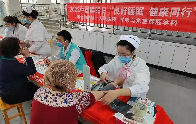 喀什地區(qū)科協(xié)聯(lián)合地區(qū)護(hù)理學(xué)會、喀什地區(qū)第一人民醫(yī)院呼吸與危重癥醫(yī)學(xué)科、綜合心理科專家團(tuán)在喀地一院疏附廣州新城院區(qū)以及疏附縣人民醫(yī)院,開展第22個(gè)“世界睡眠日”主題宣傳義診活動,今年活動的主題是“良好睡眠,健康同行”。