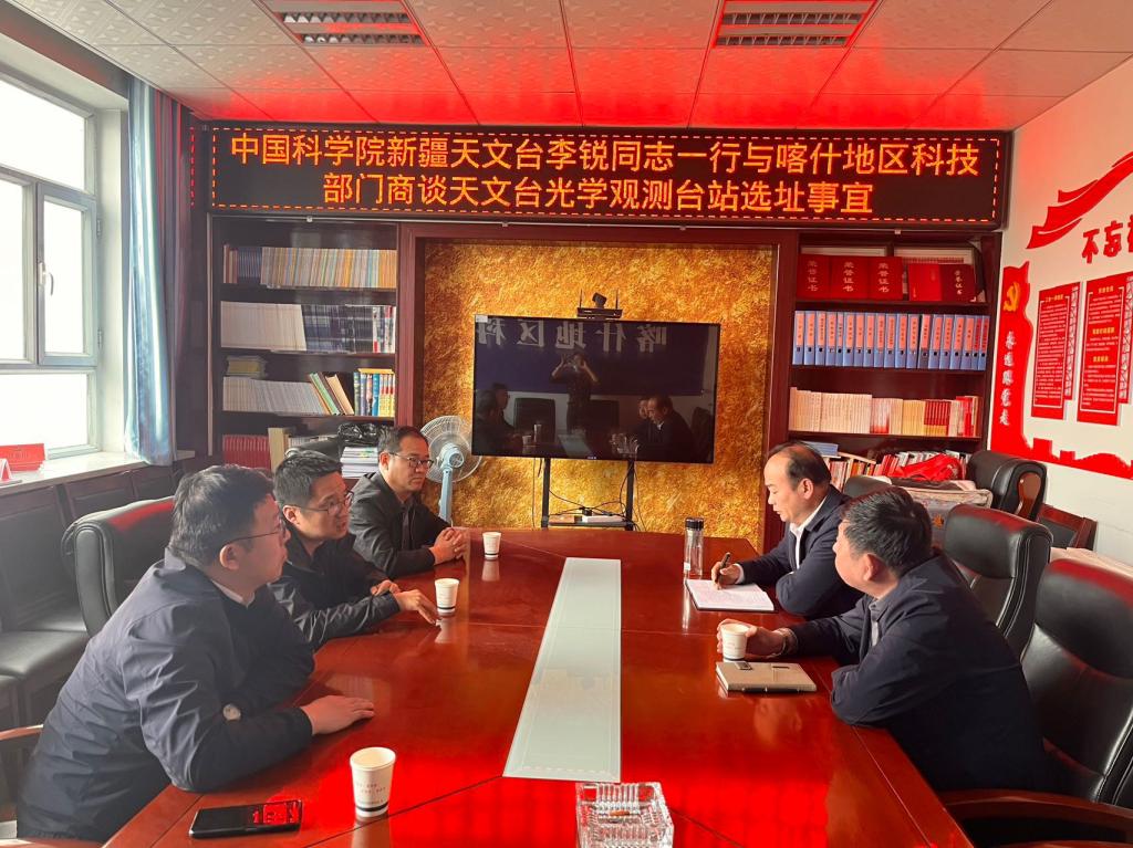 王天雨書記表示,十分歡迎中科院的科技工作者來到喀什,地區(qū)科協(xié)、科技局將大力支持新疆天文臺在烏魯瓦提的定點監(jiān)測工作。會談中雙方還就在喀什地區(qū)合作開展天文科普活動進(jìn)行了討論。